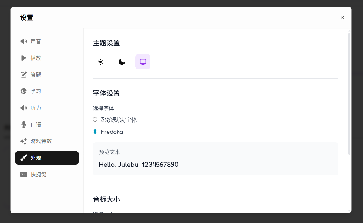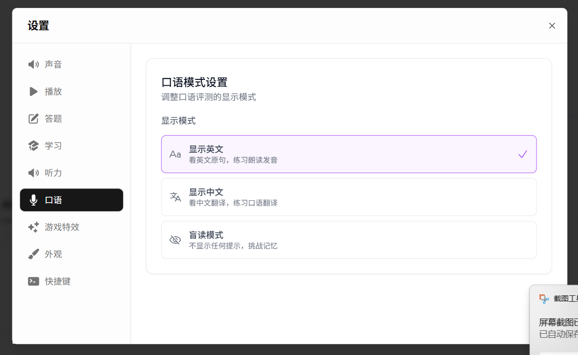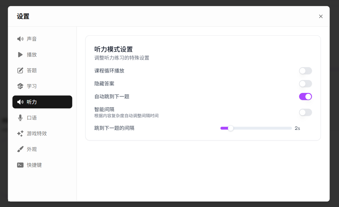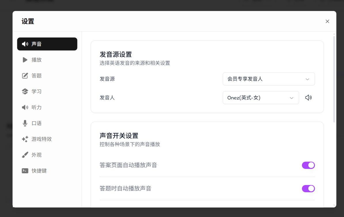 不同的人对声音的喜好不同,适合自己的声音设置能让你学得更舒服。