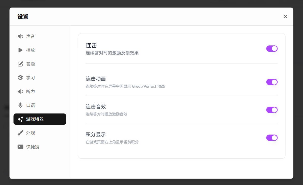 连续答对时会出现,如果你觉得干扰学习,可以关闭。