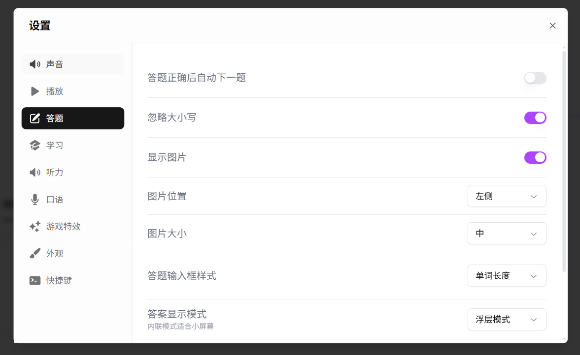 答对答错的提示音,给你即时反馈。